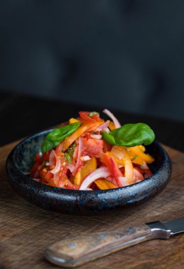 Édes burgonya és kelkáposzta saláta Roqueforttal